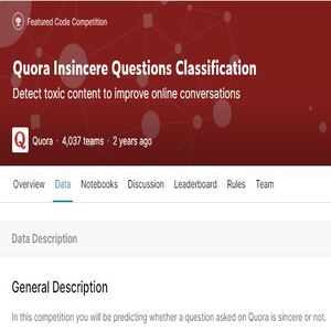 View ProjectAs part of a group project for Advanced Machine Learning I worked on a kaggle competition proposed by Quora in which we had to use NLP techniques and deep learning to classify real world questions into two categories. The main challenge of this project was dealing with a large and unbalanced dataset and achieving a score comparable to that obtained by the competition leaders.